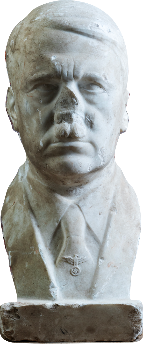 Diese Büste glorifiziert den Tyrannen und Diktator Adolf Hitler. Gefunden wurde sie in einer Baugrube in Berlin. Bis 1945 stand an dieser Stelle ein öffentliches NS-Regierungsgebäude. Eventuell befand sich die Büste in dessen Interieur oder sie gelangte zufällig an den Fundort.