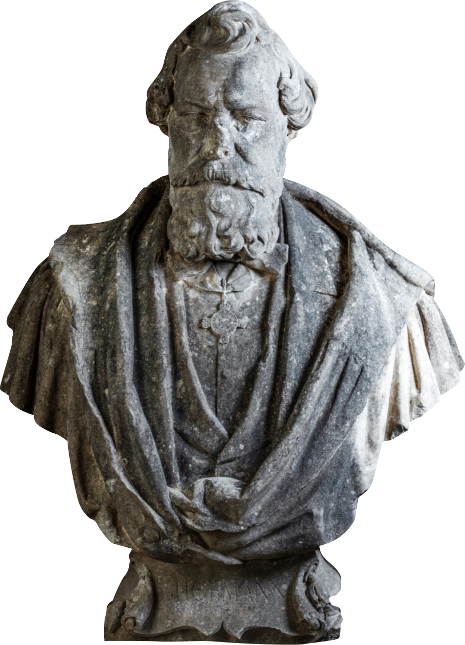 Die Büste stellt den Chemiker Anton Wilhelm Hofmann dar.